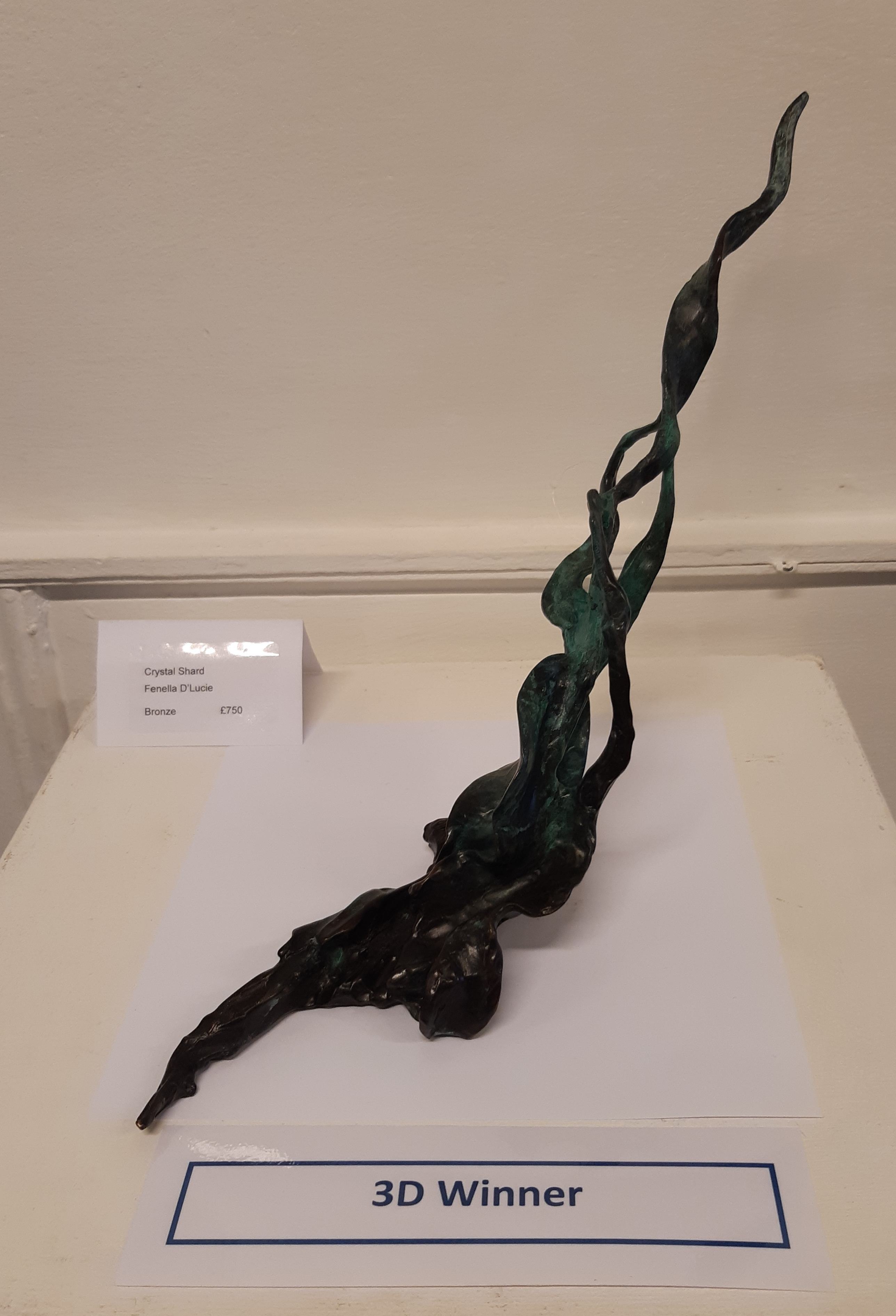 Fen's work 'Crystal Shard' has received the '3D Winner' Award at the Ilminster Annual Open Exhibition 2023 in Somerset, kindly sponsored by Branston.